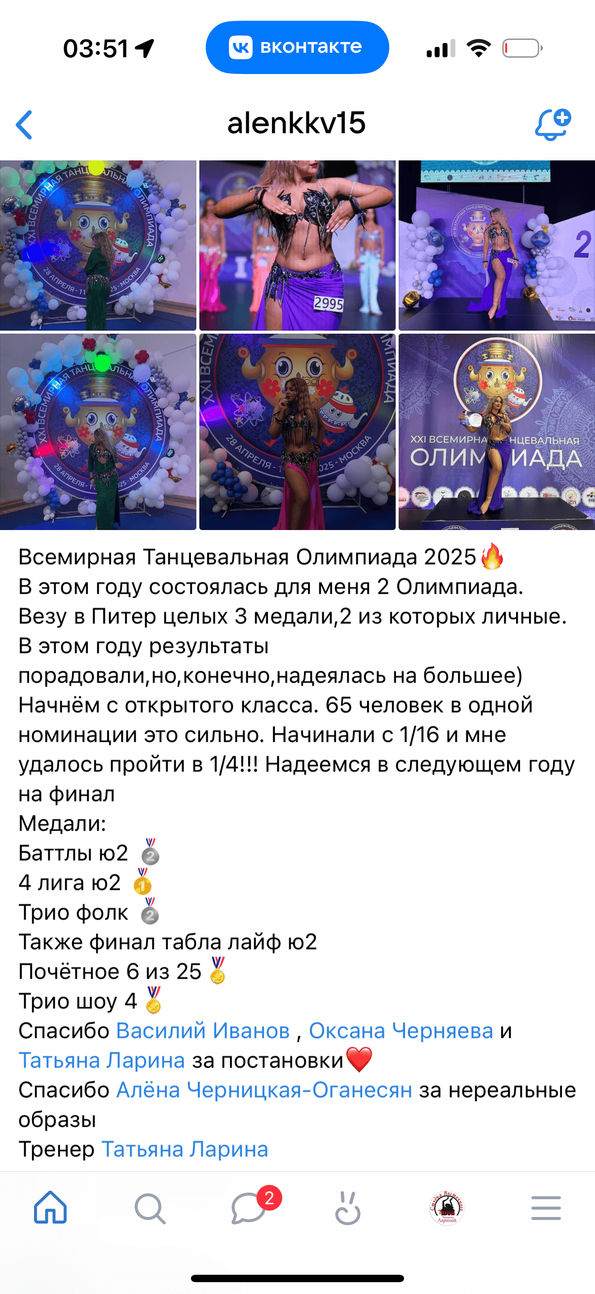 • Победитель и призёр международных фестивалей (NILE GROUP, Богиня Востока, Кайро Мираж).
